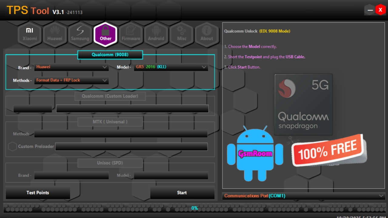 TPS Tool V3.1 (Build 241113) is the latest version of the popular TPS multi-brand servicing software designed for Windows-based systems. This release comes with enhanced support for MediaTek (MTK), Qualcomm (QCOM), Spreadtrum (SPD), and UNISOC devices. It provides comprehensive features such as boot repair, FRP removal, IMEI repair, pattern unlock, and firmware flashing, among others.